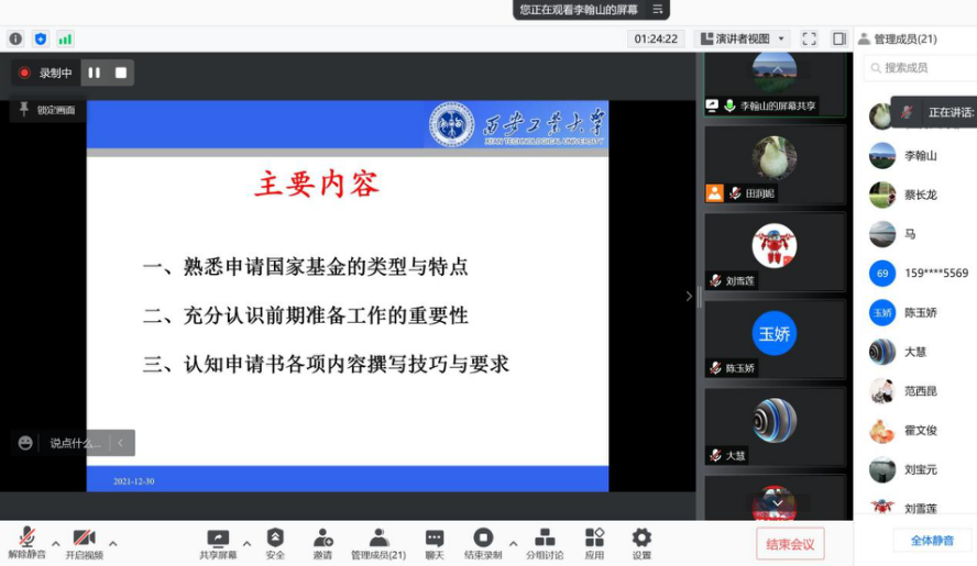2021年12月30日下午,兵器学院组织开展疫情期间线上国基金一对一交流提升会,邀请我校李翰山教授进行交流指导,学院全体教师参加。