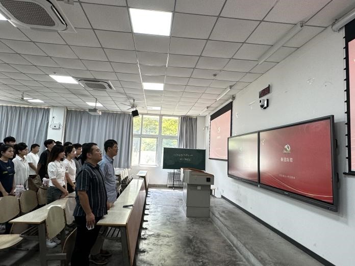 最后,随着国际歌旋律的响起,全体党员起立,共唱这激励人心的歌曲,深刻鞭策着每位党员不忘初心、牢记使命,以更加饱满的热情、更加坚定的步伐,向着更高的目标迈进。
