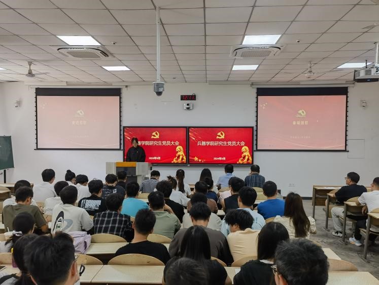 王亦澜首先宣布会议开始,全体与会人员起立并高唱中华人民共和国国歌,大会在庄严的国歌声中拉开序幕。会议第二项,王亦澜宣读了兵器学院党委《关于同意我院研究生五个学生党支部换届选举结果的批复》。二五届研究生支部书记代表王艺对过去一年的工作做出总结与汇报,并总结了目前支部存在的问题。随后,新一届研究生支部书记代表王亦澜发言,在发言中对支部未来一年的工作计划进行了陈述。陈丁在最后的讲话中首先对支部提出了殷切的期望,并强调,每位同学都应抱着“路虽远,行则将至;事虽难,做则必成”的伟大信念不断努力奋斗,为新时代的建设添砖加瓦。