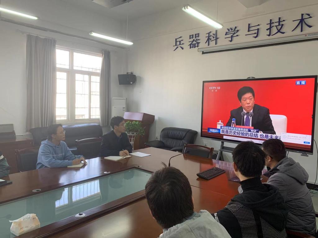 2021年11月12日上午10时,中共中央举行新闻发布会,介绍党的十九届六中全会精神,kaiyun开云官方举行了视频观看学习讨论,会议由郭永春院长主持,学院教工支部和学生支部全体党员参加。