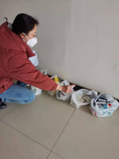 但她不惧艰难,迅速建立楼层学生信息管理系统,挑选得力志愿者,迅速掌握管理楼层的学生基础信息,有条不紊的开展各项工作。学生一个电话、一个信息,她就立马到场,她的口头禅就是“有事随时找我”。随着时间的推移,需要生活用品、身体不适需要购药、防疫物资需要补充、学生心情不稳等各种问题都冒了出来,此时的田老师就像孩子们亲爱的“家长”,穿梭在公寓的走廊、宿舍、学院和防疫办,亲力亲为,给学生配备分发生活和防疫物资、宣传防疫知识、采购紧急常用药、与学生谈心问候,组织学生定期测核酸,让学生在这段特殊时期感受到来自学校、学院、老师的关怀,学生们亲切的称她“田姐”。
