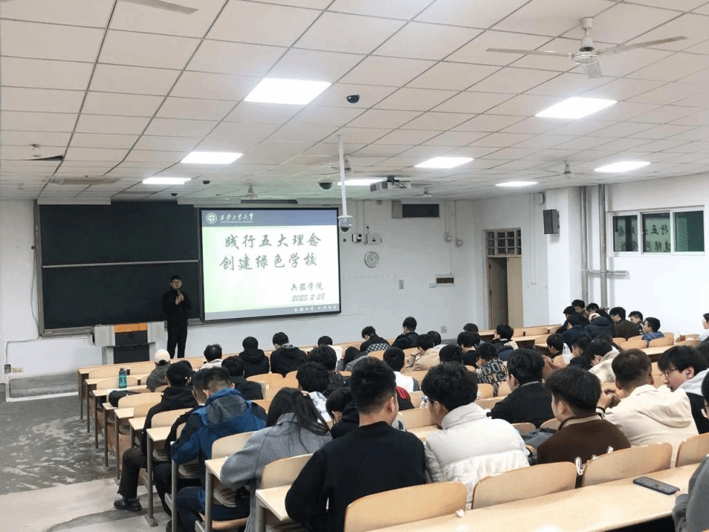 此次动员会由我院辅导员王国栋老师主讲,兵器学院全体研究生和本科生参加。王老师从创建绿色学校背景、意义、主要内容及具体行动多方面讲解,同时向本院师生提出倡议: