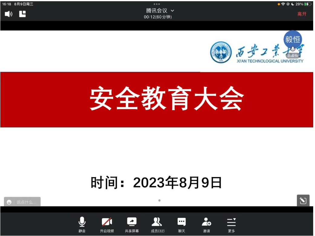 目前正值暑期,自然灾害频发、新型互联网诈骗手段层出不穷,为进一步加强大学生校内外人身财产安全意识,8月9-10日kaiyun开云官方对全体学生开展了防汛防溺水、反电信诈骗与自身财产及出行安全线上教育培训,使同学们敲响了安全的警钟,增强自我安全防范技能,共同构建平安和谐校园!