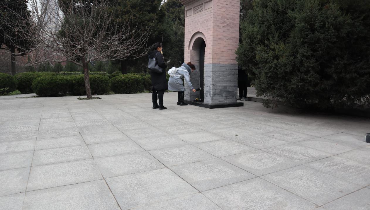 为人民而死但精神仍在的还有千千万万个烈士,我们无法忘记。纪念碑两侧的回廊刻着烈士英名录,几千个名字嵌在冰冷的墙面,有的同名同姓,有的可能是同宗,还有的未能确认身份,只能写作“无名烈士”,但每一个人名背后都是一个壮烈的故事。烈士墓区安葬着243位烈士的遗骨,墓区中间排列着三个墓冢,分别是杜斌丞烈士墓、曹力如烈士墓和“西安九烈士”墓。同学们在墓碑前驻足,认真了解烈士们的生平,怀着崇敬的心情深深鞠躬,献上鲜花以寄托哀思。