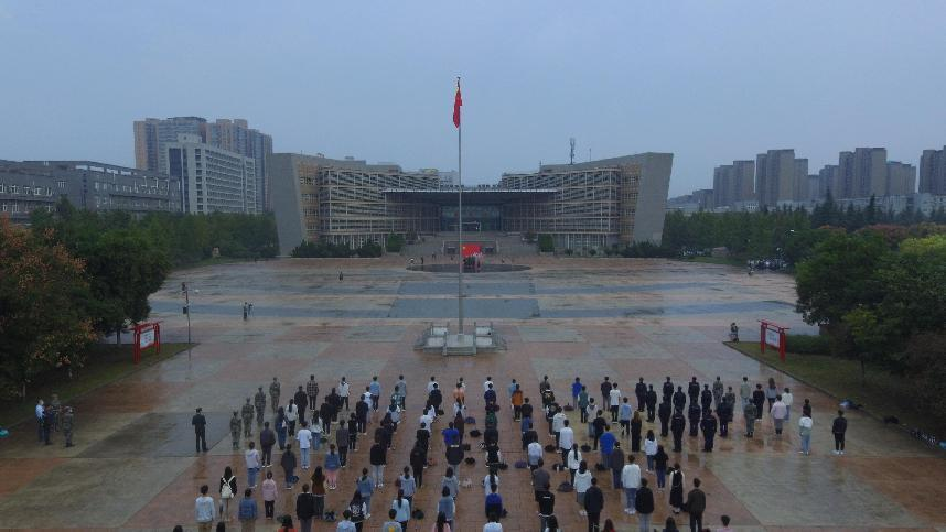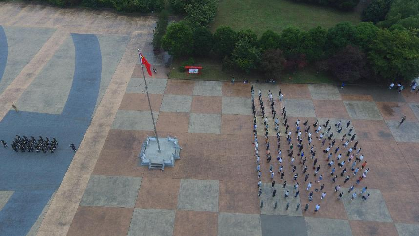 10月1日早7点,kaiyun开云官方组织学生在经纬广场观看升旗仪式。