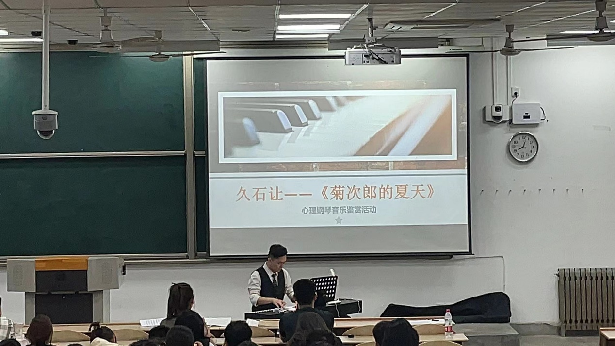 为了帮助同学们放松身心,缓解压力,调节自我精神状态,同时帮助同学们树立维护心理健康的意识,以便在以后更好的学习和工作中拥有积极向上的健康心态。我院心理部在王国栋老师的指导下,由22级研究生暨心理委员李瀚岳表演,本科生和研究生一起参加的“琴声悦耳,治愈心灵”心理钢琴音乐鉴赏活动,于4月16日晚7点到9点在教一开展。