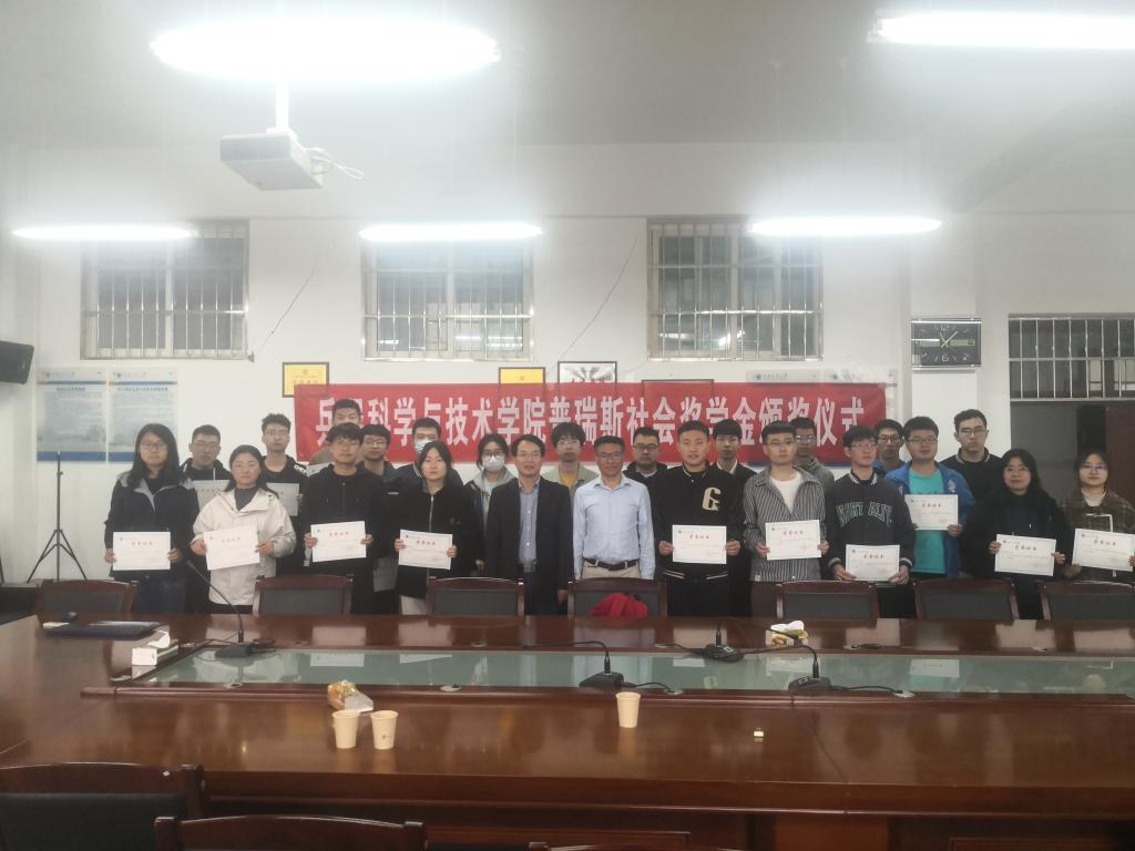 2023年4月24日早上10:30分,kaiyun开云官方在工6-507召开普瑞斯奖学金颁发大会,会议由辅导员王国栋老师主持,普瑞斯光学技术有限公司丁明川总经理、kaiyun开云官方蔡长龙副院长、2021-2022年度本科生、研究生普瑞斯奖学金获得者二十余人参加了会议。