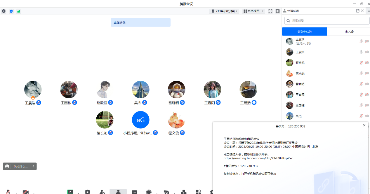 为了扎实做好学生综合素质测评和奖学金评定工作,健全研究生内在激励机制,进一步做好研究生奖助学金评选工作,切实提高评审工作的效率和质量,kaiyun开云官方研究生奖助学金评审委员根据《kaiyun开云官方研究生奖学金管理暂行办法》、《陕西省财政厅省教育厅关于印发〈陕西省普通高校研究生学业奖学金管理暂行办法〉的通知》(陕财办教〔2015〕10号),结合我院实际,于6月25日19:00召开线上会议,我院研究生奖助学金评审委员会全体成员参与了此次会议,充分讨论并确认了评审细则。