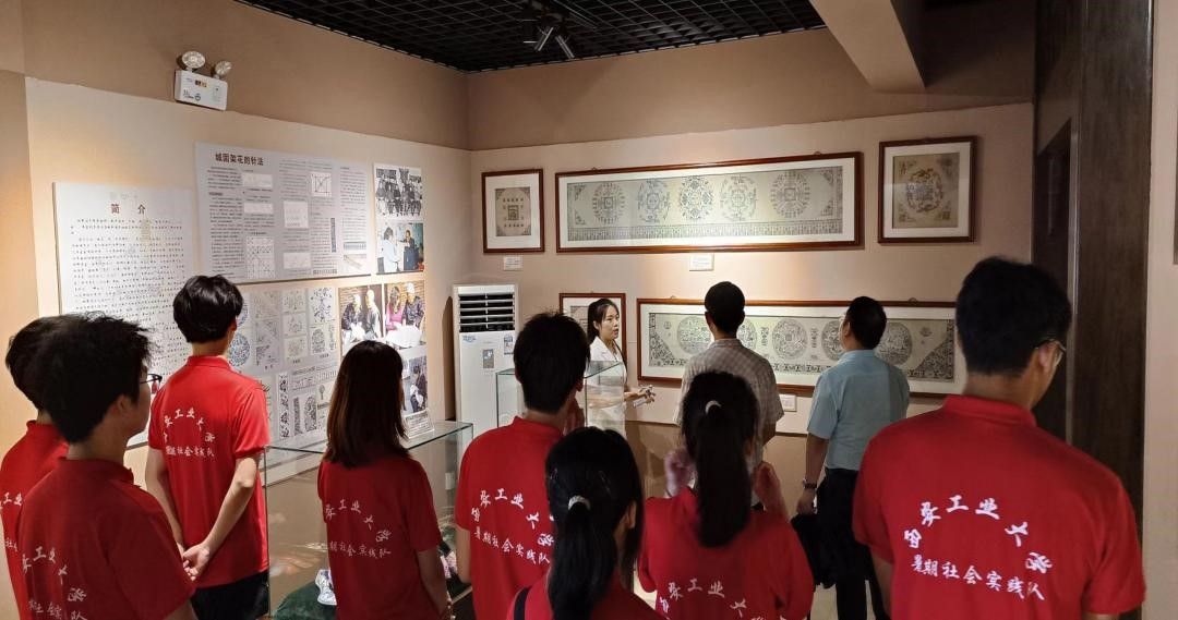 仪式开始前,文化馆负责人带领我院师生参观了非遗展示馆和书画馆,详细介绍了城固县架花、张骞传说、城固剪纸、城固泥塑等当地特色非遗文化作品展。