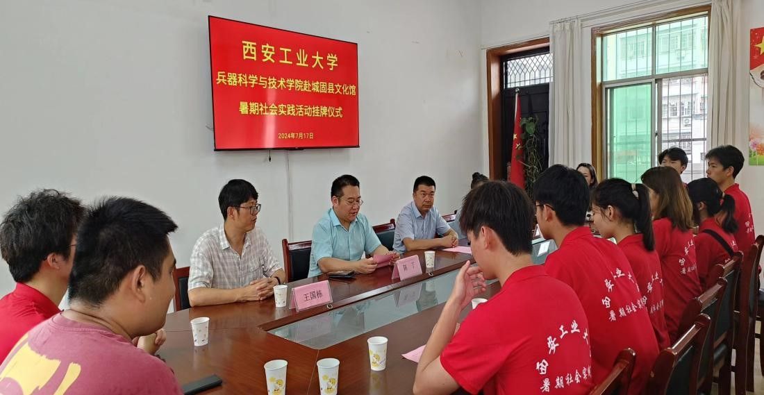 兵器学院院长助理陈丁、辅导员王国栋于2024年7月17日赴城固县文化馆进行社会实践挂牌仪式,参加此次挂牌仪式的有城固县文化局局长周茂来、副局长孟凡一以及我院暑假社会实践的学生们。